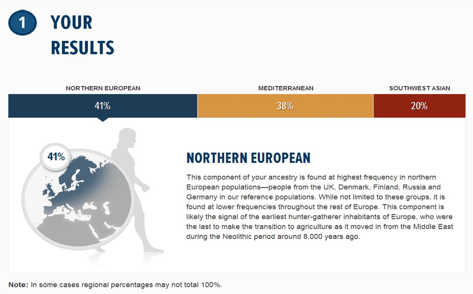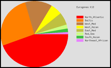 La cosa interessante di questi calcolatori è che alcuni vi danno un oracolo, cioè, una volta elencatevi tutte le vostre admixtures principale, vi dicono dove simili combinazioni si trovano con più frequenza e di conseguenza cercano di indovinare la vostra area di provenienza (il vostro cluster genetico).